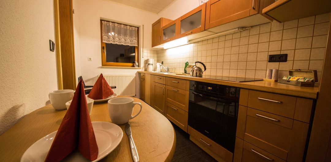 Die moderne Küche ist vollständig ausgestattet und bietet alles, was Sie für entspannte Urlaubstage zu zweit benötigen.